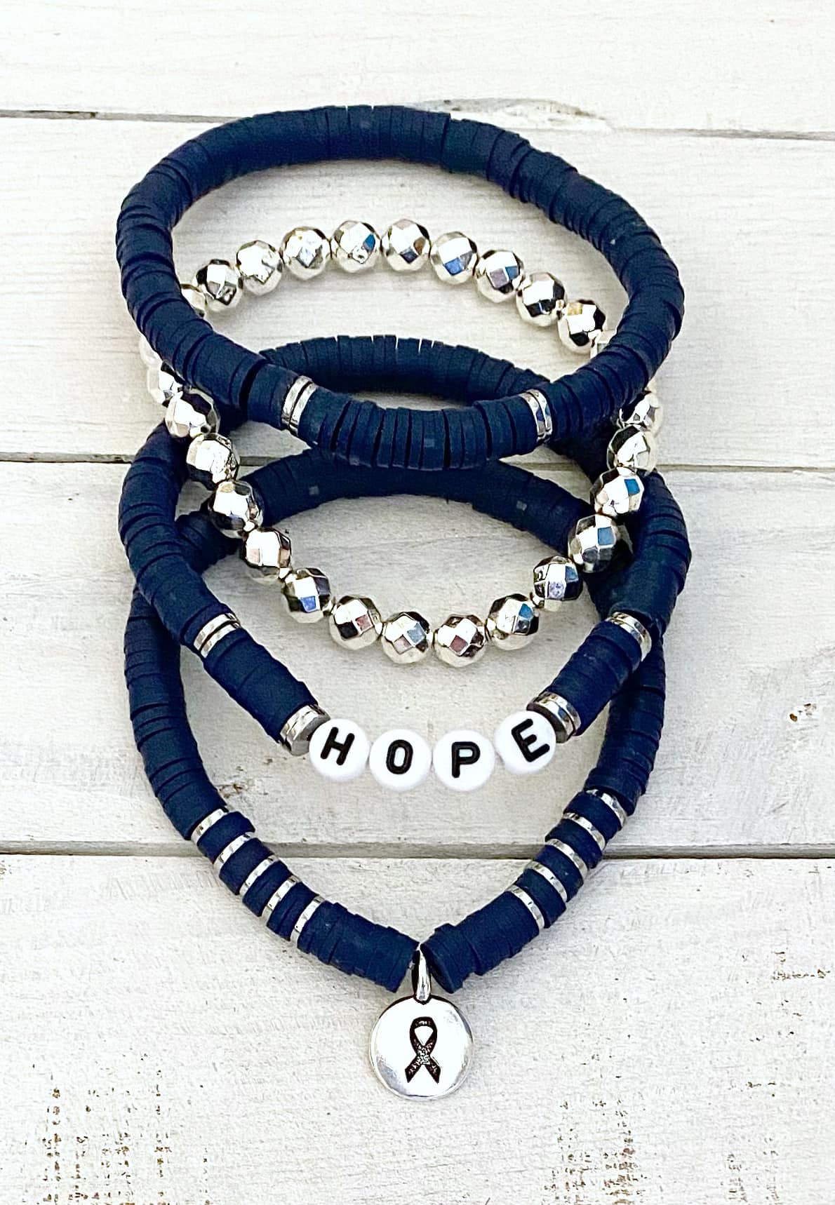 Colon Cancer Awareness Blue Ribbon Stacked Stretch Bracelet Set Survivor Hope Love You Select Bracelet Length and Wording Arthritis Dystonia