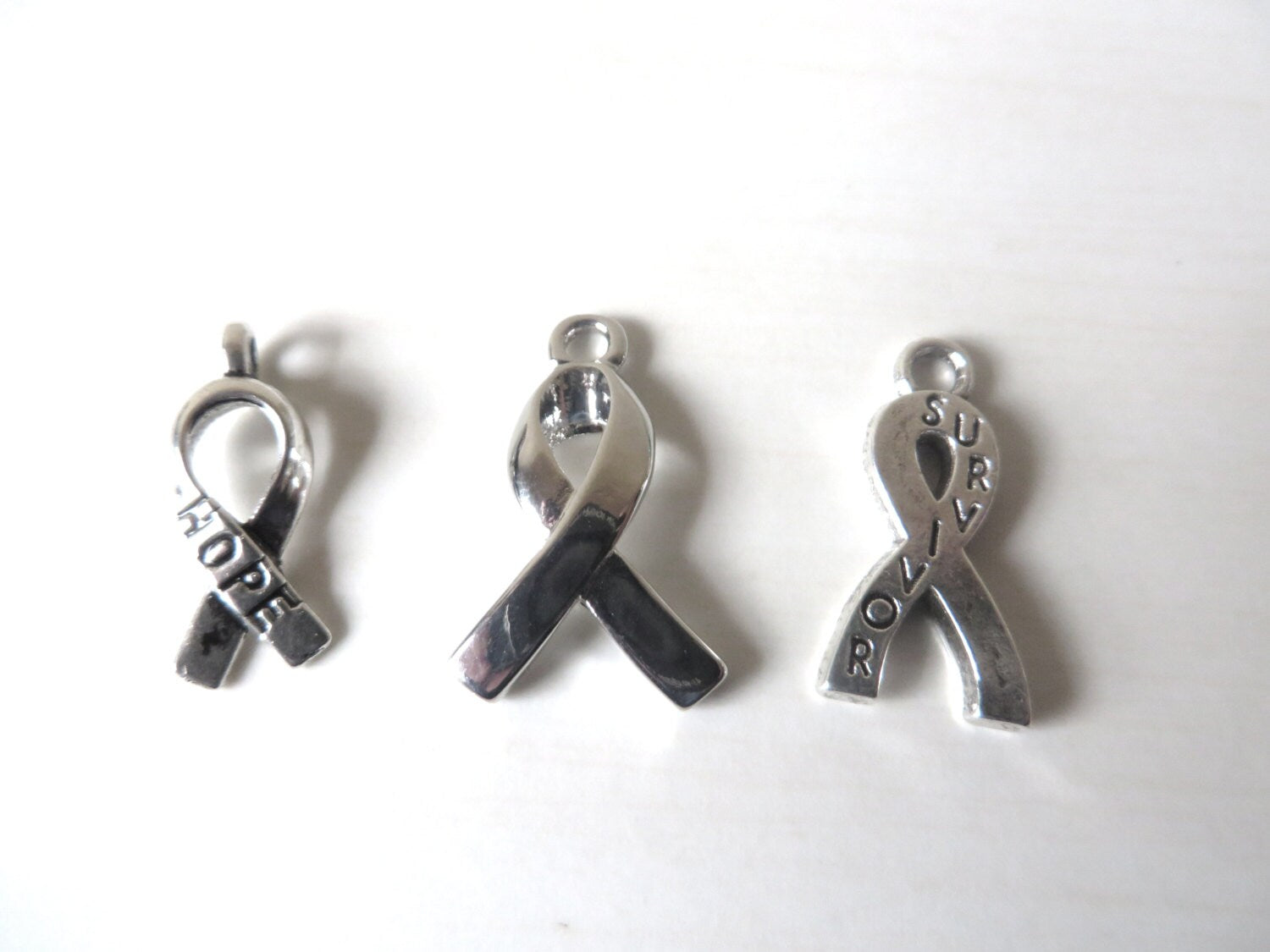 Green Awareness Ribbon Hope Survivor Silver Ribbon Pendant Necklace You Choose Ribbon Design
